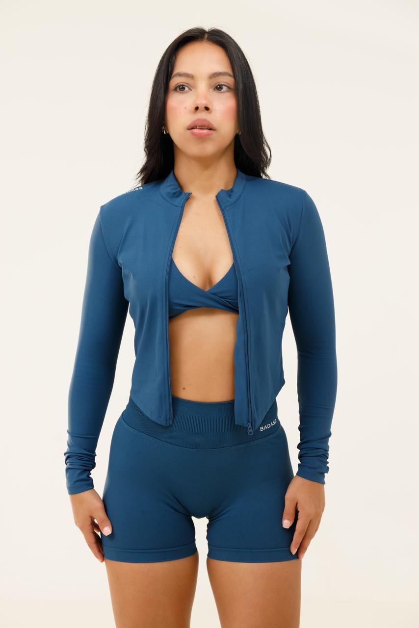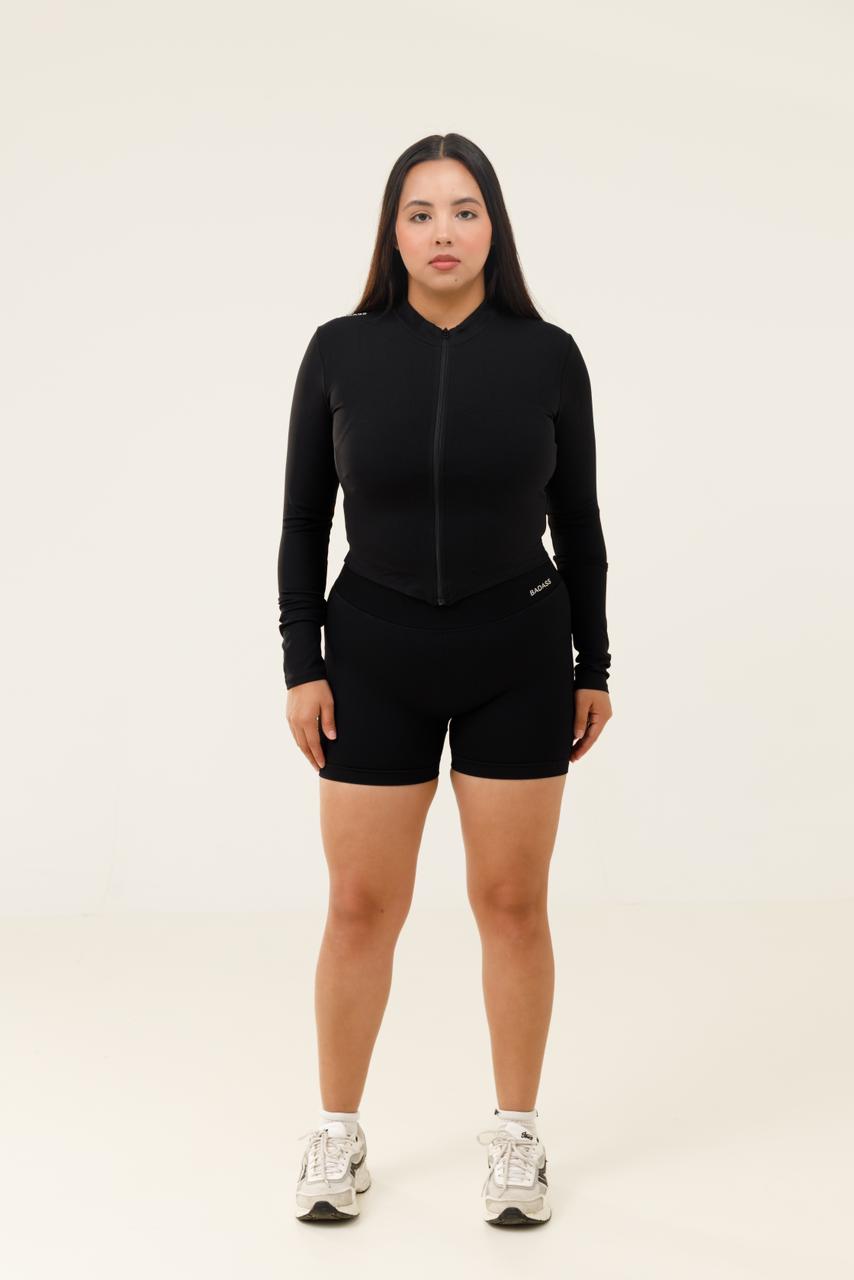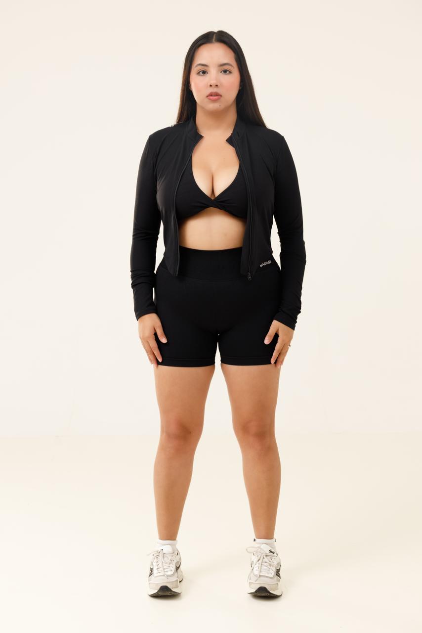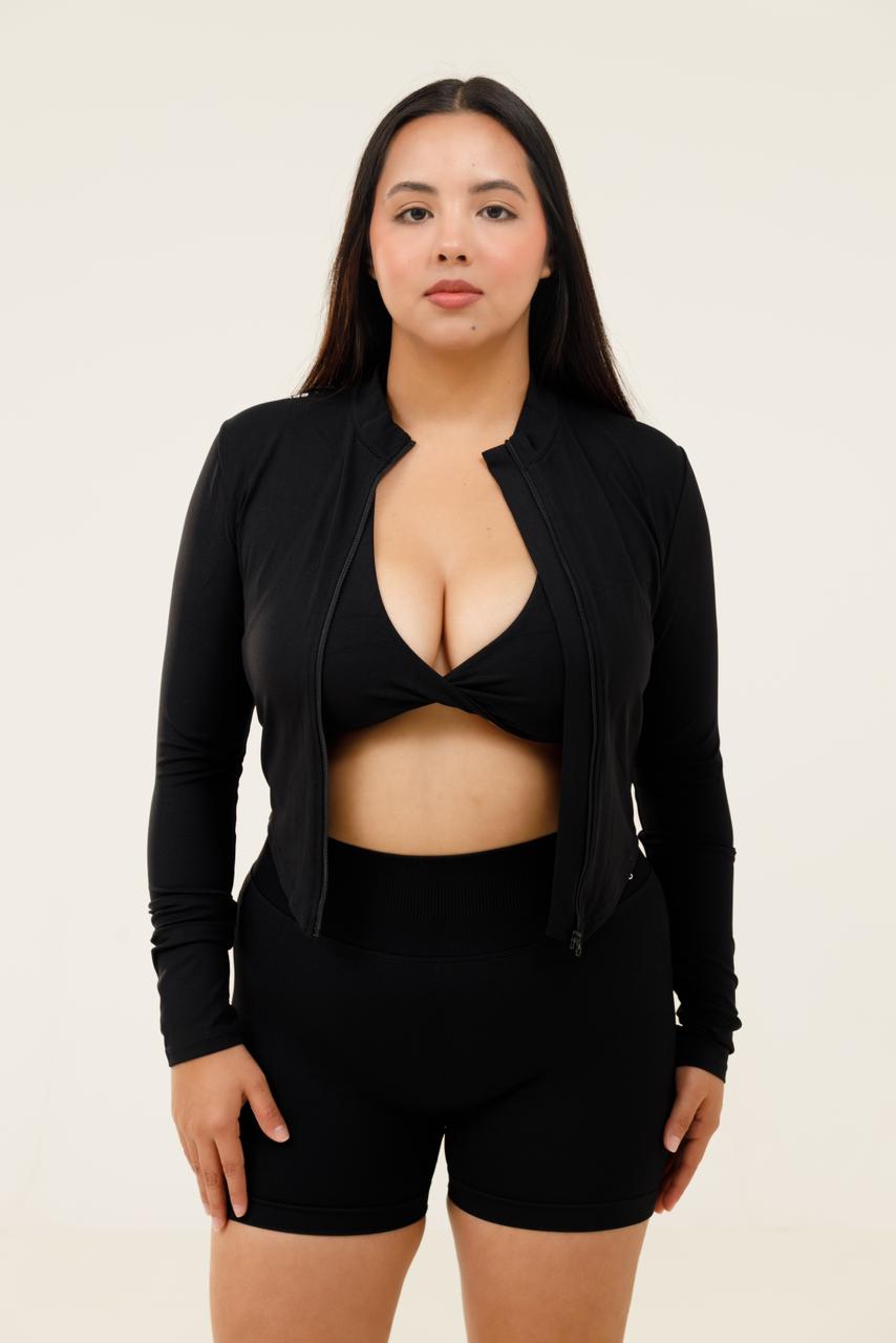 El set "Moon" diseñado en tres piezas BIKER, top y jacket, elaborado en una tela elástica de alto rendimiento, que se adapta al cuerpo brindando soporte, libertad de movimiento y una silueta favorecedora.