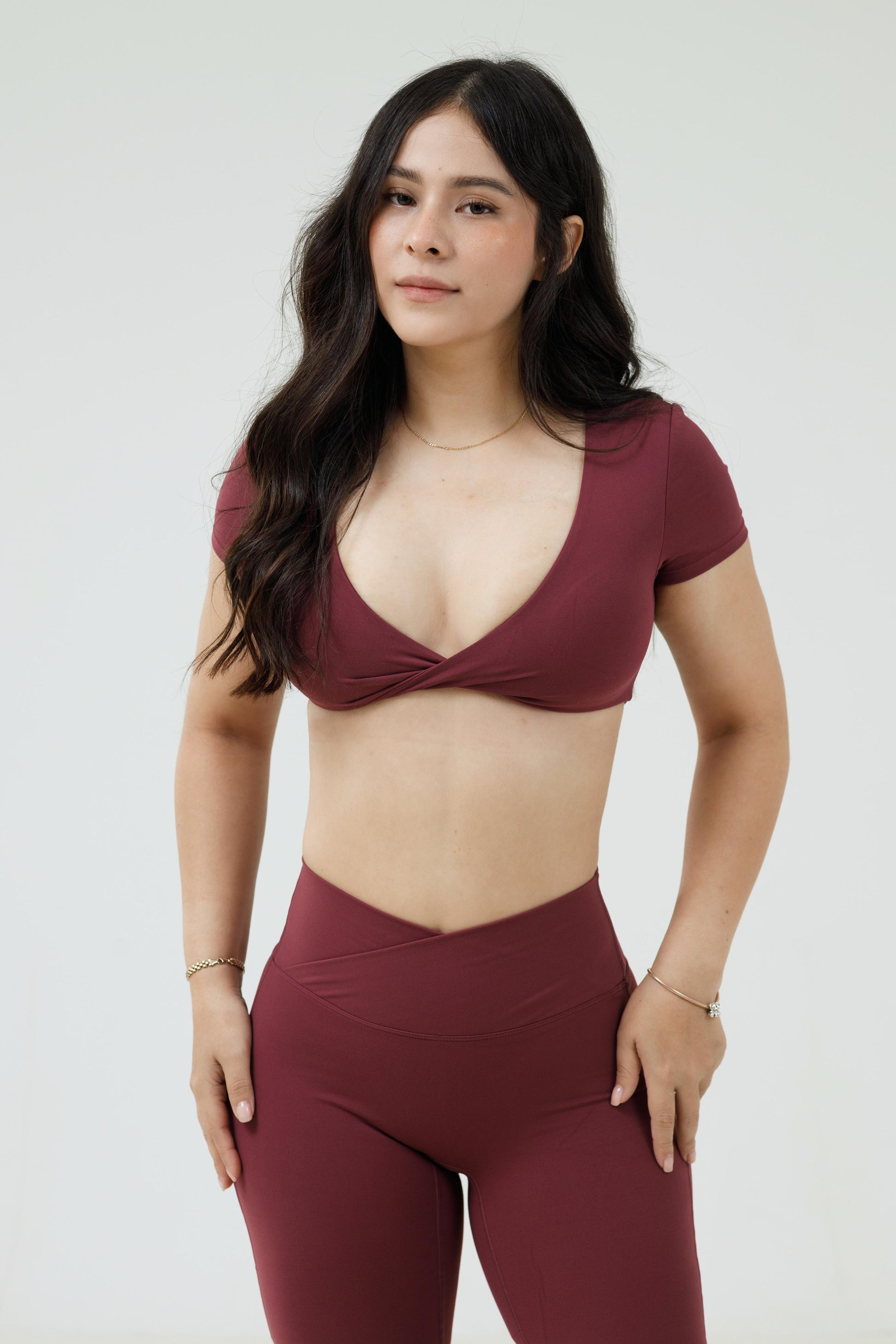 un set creado con el fin de traer comodida,belleza y resistencia en cada movimiento,con un diseño en la parte de la cintura de la leggins en forma de V que hace que tu cintura se vea mas reducida,con un top con manga y un escote en forma de V que trae su propio soporte este estilo no cuenta,con efecto push,con una tela gruesa y comoda, resistente en cada movimiento que realices,no trasparentable